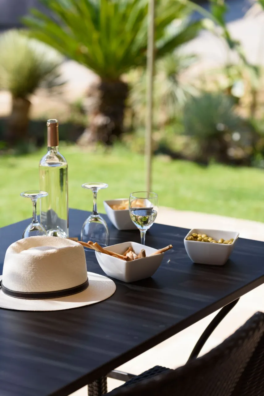 Ambiance chaleureuse, décoration inspirée du Sud et terrasse donnant sur les jardins : parfait pour les couples cherchant un hébergement calme à deux pas de la plage.